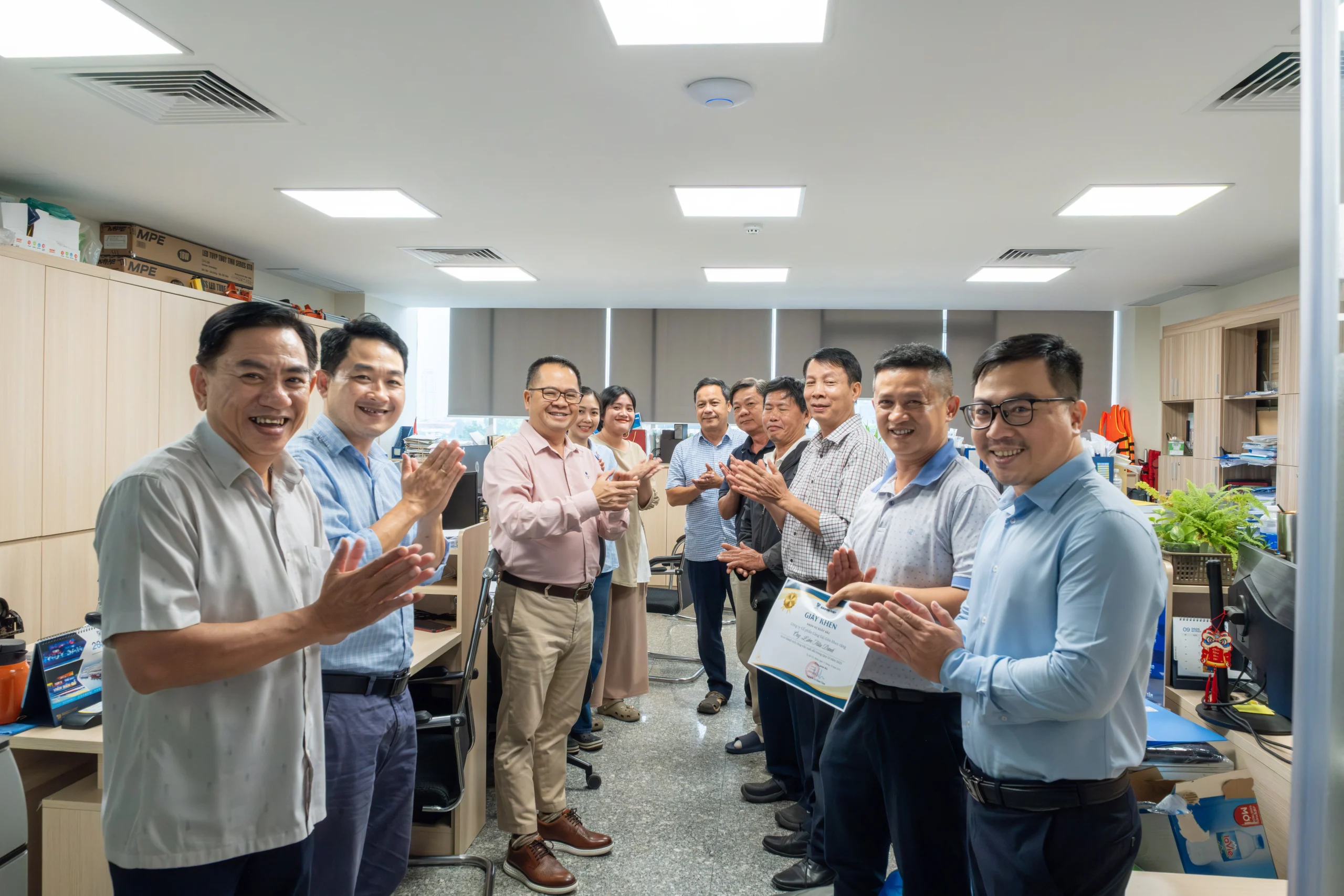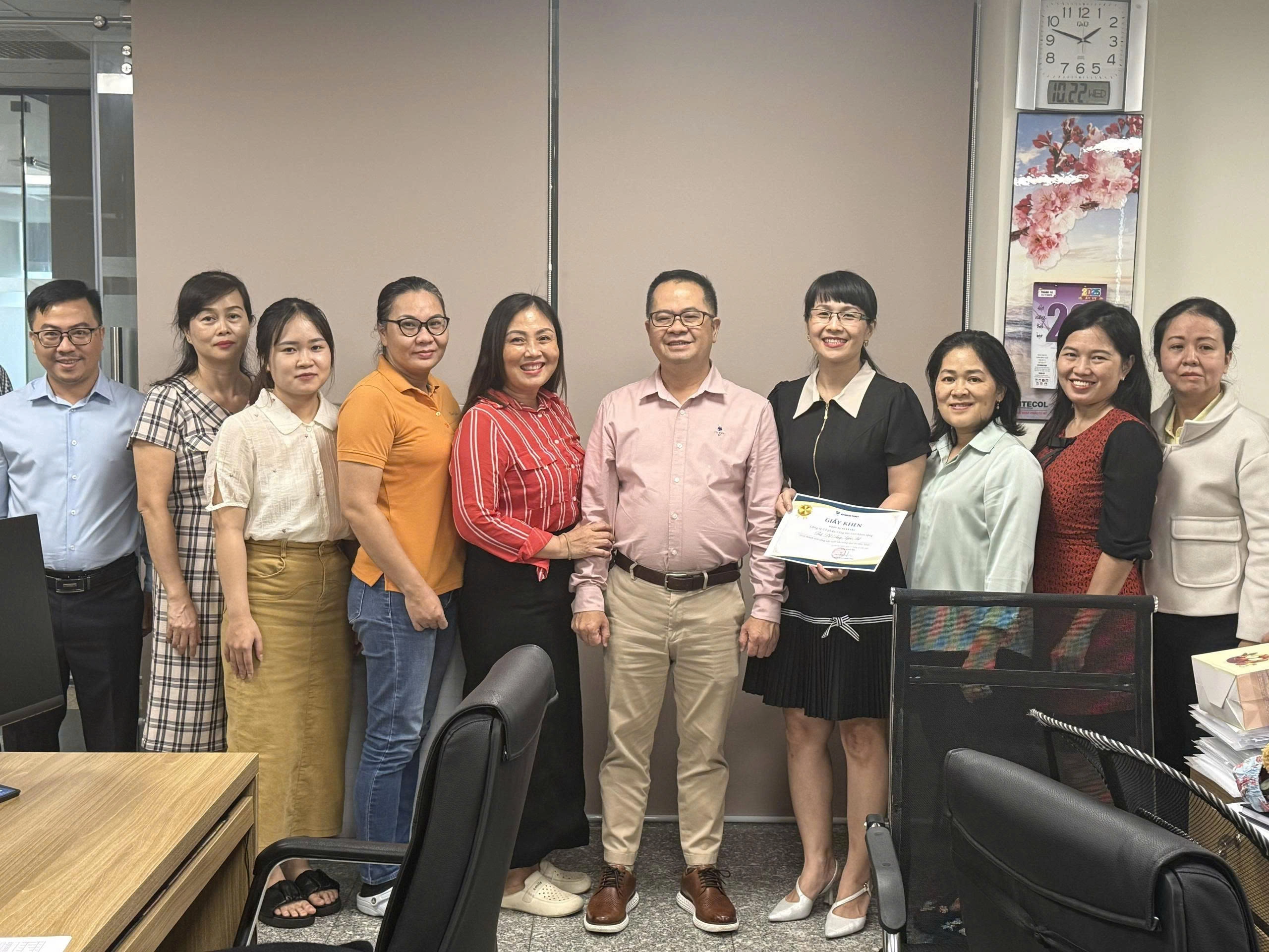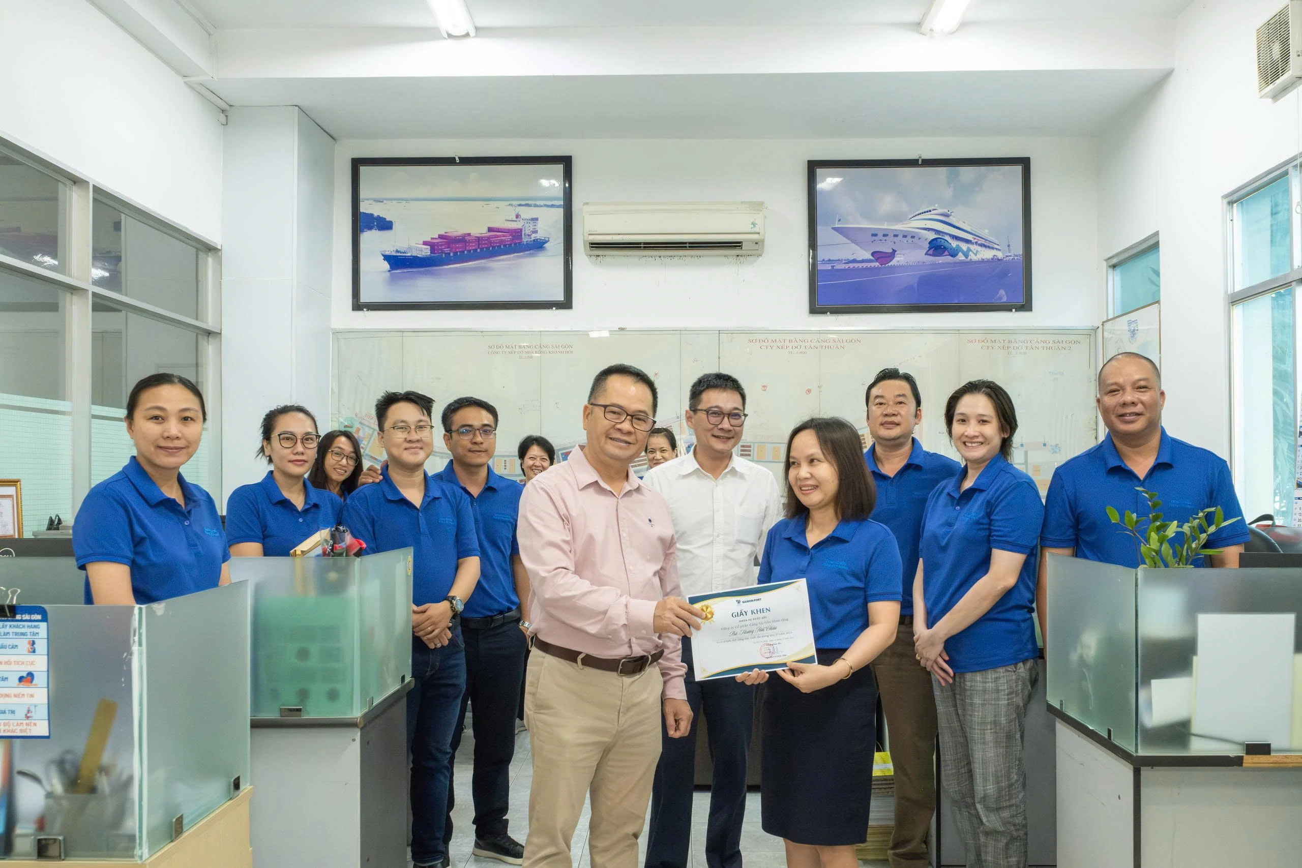 Đáng chú ý, đây là lần đầu tiên Tổng giám đốc Nguyễn Lê Chơn Tâm trực tiếp đến từng phòng ban, đơn vị để trao giấy khen cho các cá nhân được tuyên dương. Việc lãnh đạo gặp gỡ và chúc mừng nhân viên ngay tại văn phòng làm việc không chỉ tăng cường sự gắn kết giữa Ban Điều hành và đội ngũ lao động mà còn thể hiện sự trân trọng đối với những đóng góp của cán bộ, nhân viên. Hơn nữa, hoạt động này lan tỏa rõ nét tinh thần “lãnh đạo đồng hành” – một giá trị cốt lõi trong văn hóa doanh nghiệp VIMC, từ đó củng cố sự gắn bó nội bộ, khích lệ tinh thần làm việc tích cực và góp phần hiện thực hóa mục tiêu nâng cao chất lượng dịch vụ, gia tăng năng lực cạnh tranh của Cảng Sài Gòn trong giai đoạn phát triển mới.