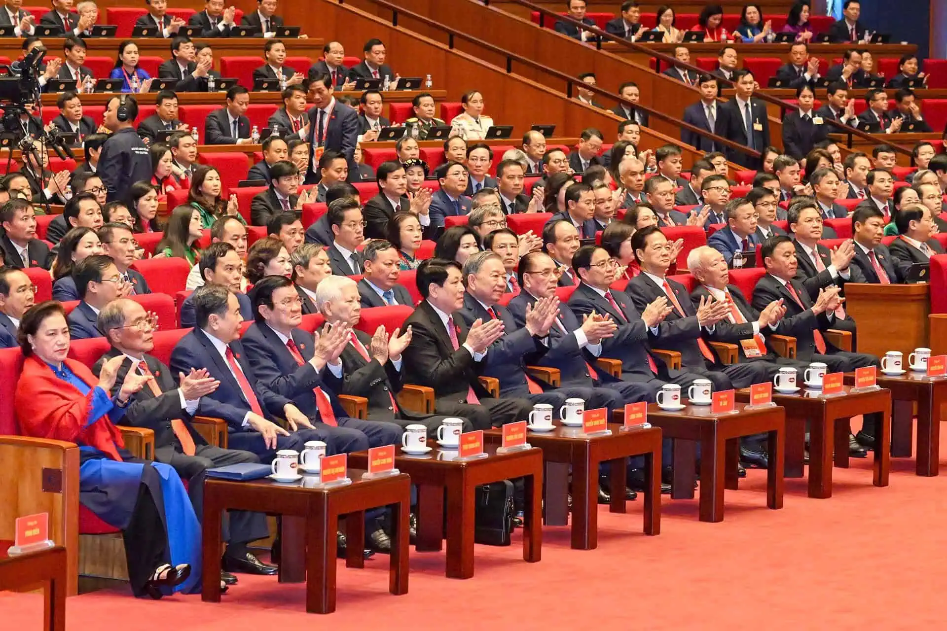 Cùng dự có các đồng chí nguyên Ủy viên Bộ Chính trị: nguyên Tổng Bí thư Nông Đức Mạnh, nguyên Chủ tịch nước Nguyễn Minh Triết, nguyên Chủ tịch nước Trương Tấn Sang, nguyên Thủ tướng Nguyễn Tấn Dũng và các đồng chí nguyên Chủ tịch Quốc hội: Nguyễn Văn An, Nguyễn Sinh Hùng, Nguyễn Thị Kim Ngân; các đồng chí nguyên Ban Bí thư Trung ương Đảng, các đồng chí nguyên lãnh đạo Đảng, Nhà nước, Mặt trận; các Mẹ Việt Nam Anh hùng…, đại diện các tổ chức quốc tế, phái đoàn ngoại giao cùng gần 1.600 đại biểu đại diện cho hơn 5,6 triệu đảng viên trên toàn quốc.