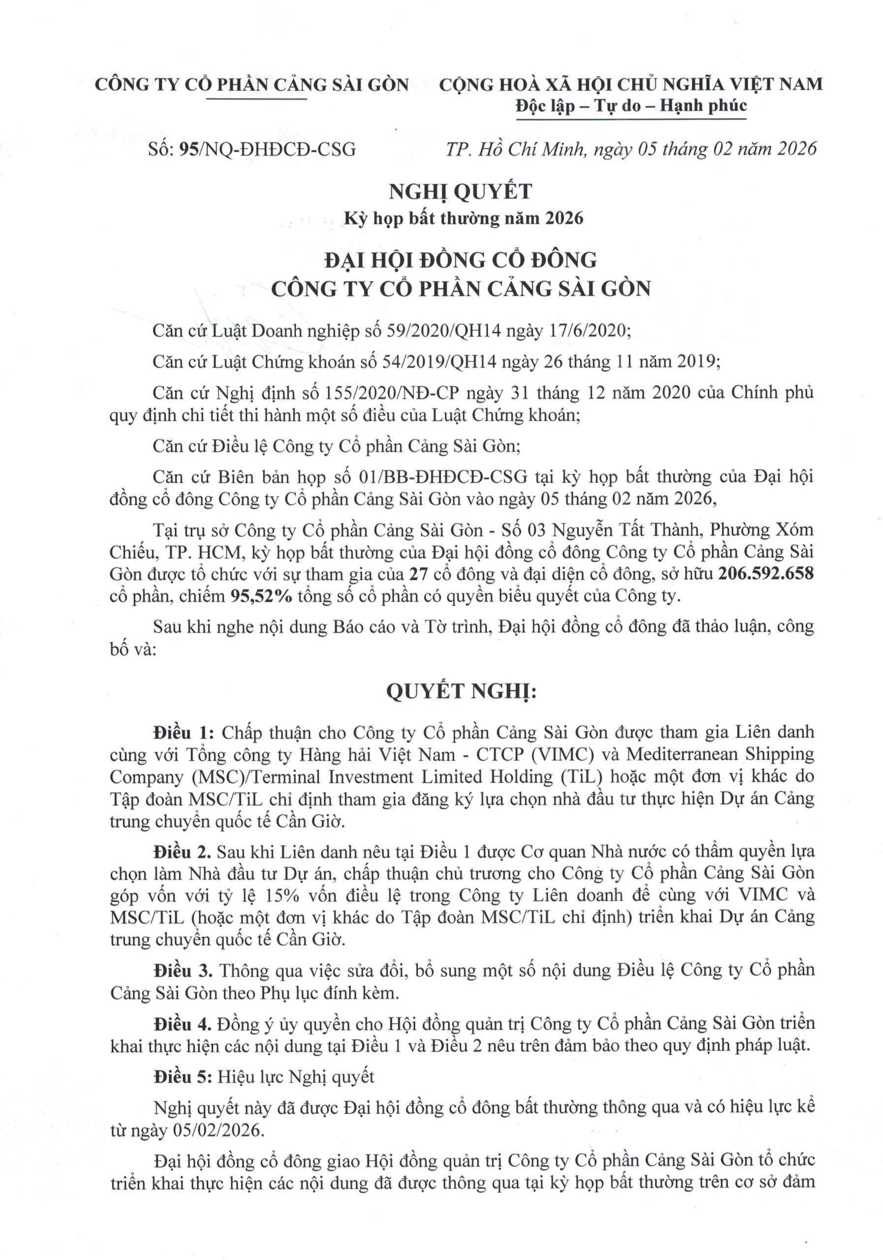 Công bố thông tin về thay đổi thời gian tổ chức kỳ họp bất thường năm 2026 của Đại hội đồng cổ đông Công ty Cổ phần Cảng Sài Gòn 28/01/2026