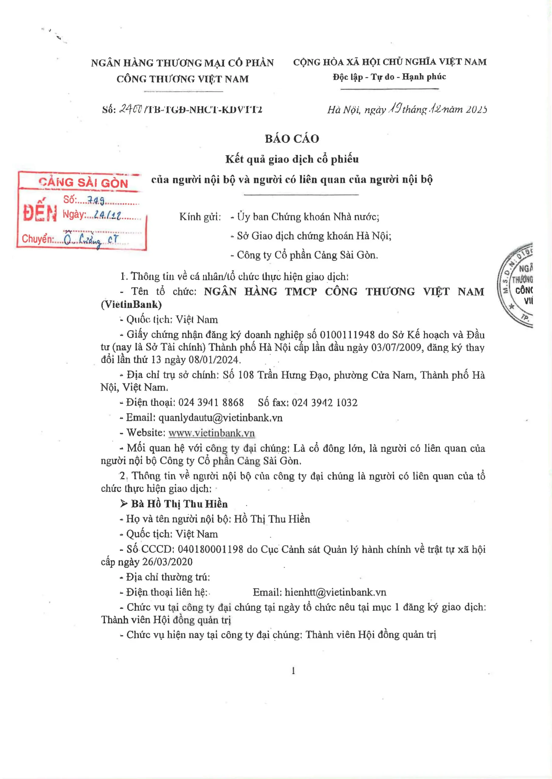 Công bố thông tin về việc Ngân hàng TMCP Công thương Việt Nam (Cổ đông lớn của Công ty Cổ phân Cảng Sài Gòn) chào bán cổ phiếu đang sở hữu tại Công ty Cổ phần Cảng Sài Gòn ra công chúng 18/11/2025