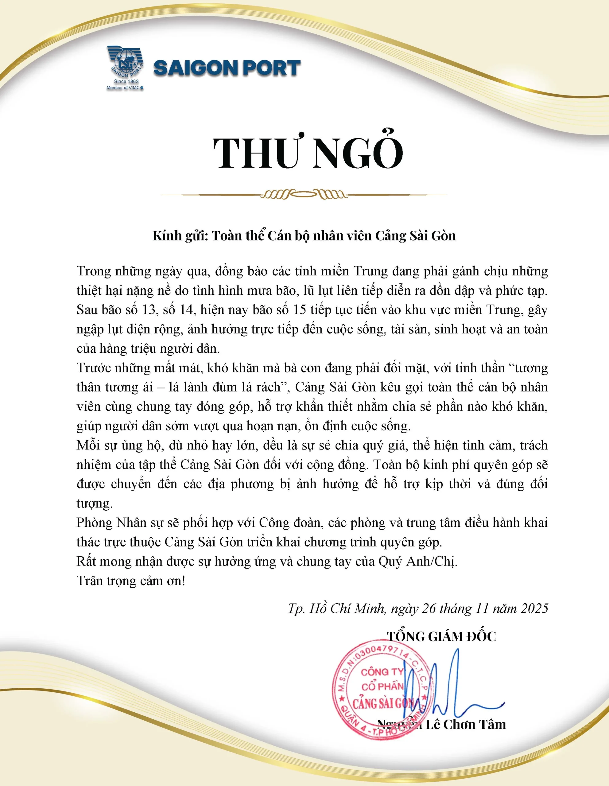 Thư ngỏ gửi đến toàn thể Cán bộ nhân viên Công ty Cổ phần Cảng Sài Gòn